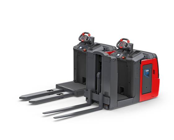 The V08 low-level order pickers are equipped with a vertically extendable lifting platform that lifts the operator up to 1.2 metres above the ground. This allows the operator to conveniently reach the second rack level when order picking.