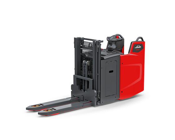 Can be used as a pedestrian or ride-on truck, providing flexibility. When transferring goods, it accelerates to a maximum of 10 km/h while the operator stands on the fully suspended, folding stand-on platform. Thanks to its narrow chassis, the truck is particularly suitable for loading and unloading trucks, and for use in confined warehouse environments.